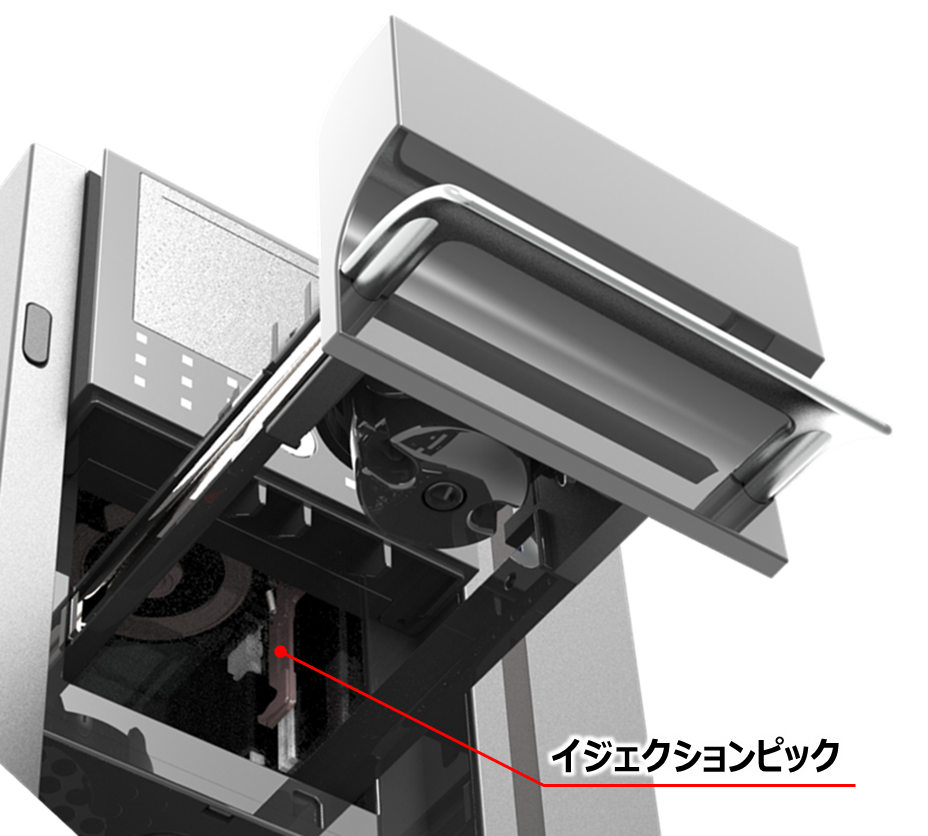 イジェクションピックが折れていませんか?![]() | 折れたイジェクションピックが引き出しに干渉したり引っかかっている可能性があります ご使用をお控えください ⇒営業担当へご相談いただき修理依頼してください 【ご注意】 プラスチック容器入りのポッドをマシンに無理やりセットし抽出動作を行うとイジェクションピックや抽出ヘッド昇降部品の損傷に繋がります 必ずポッドはプラスチック容器から取り出し、不織布製のポッドだけをマシンにセットしてください ![]() | ─ |