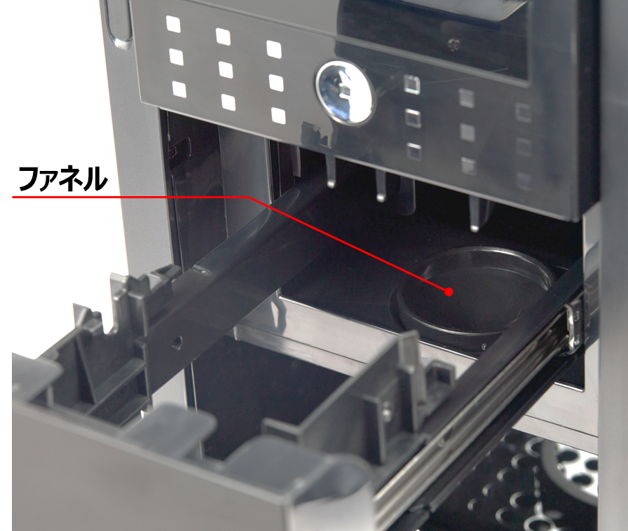 | 【抽出口周辺からの水漏れ】 ファネルが斜めに傾いてセットされていませんか? ファネルを紛失していませんか? ![]() | ファネルが水平になるようにセットしてください 紛失された場合は、営業担当へご相談してください ![]() | P.6 |