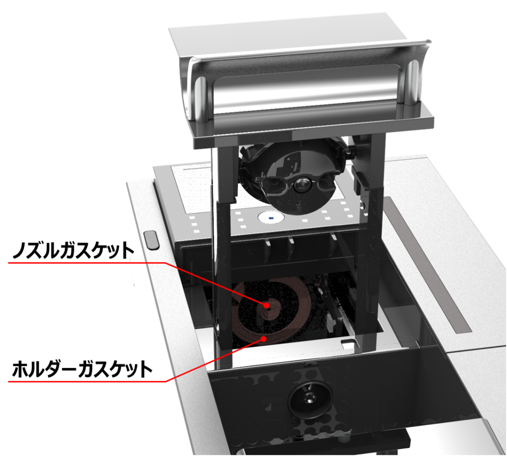 | 【抽出口周辺からの水漏れ】 抽出ヘッド内側のホルダーガスケットまたはノズルガスケットが外れていませんか? ![]() | ノズルガスケット 取り付けてください ⇒破損紛失の場合は営業担当へご相談いただき、購入・修理依頼してください ホルダーガスケット ⇒営業担当へご相談いただき、修理依頼してください | ─ |
