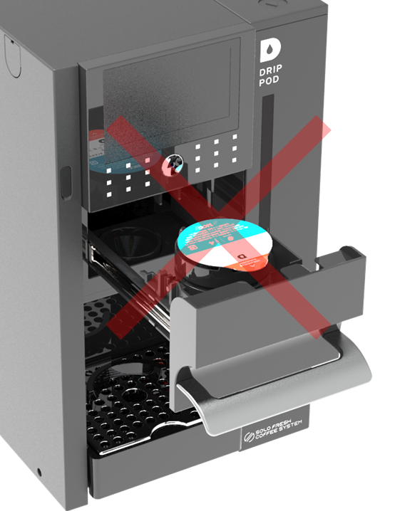 プラスチック容器入りのままポッドをマシンにセットしていませんか?![]() | 必ずポッドはプラスチック容器から取り出し、不織布製のポッドだけをマシンにセットしてください 【ご注意】 プラスチック容器入りのポッドをマシンに無理やりセットし抽出動作を行うとイジェクションピックや抽出ヘッド昇降部品の損傷に繋がります 必ずポッドはプラスチック容器から取り出し、不織布製のポッドだけをマシンにセットしてください ![]() | P.11 |