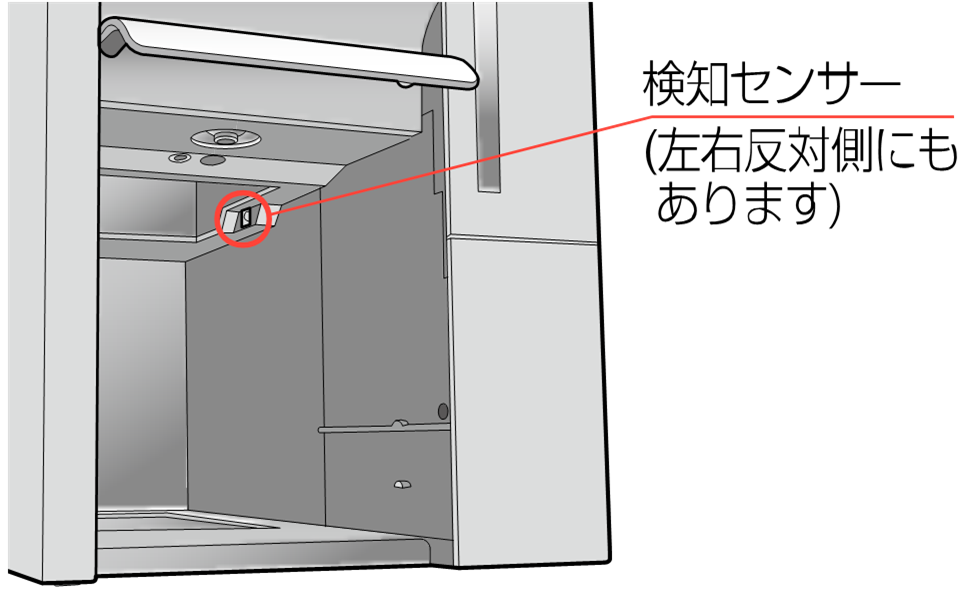 検知センサーが汚れている可能性があります。![]() | かたく絞ったふきんで検知センサーを拭いてください ⇒改善しない場合は、営業担当へご相談いただき、修理依頼してください ![]() | P.18 |
