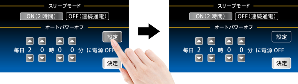 | 電源スイッチOFF→ONで電源が入りますか? | 【電源スイッチOFF→ONで電源が入る場合】 オートパワーオフが設定されている可能性があります ⇒ユーザーモードよりオートパワーオフを解除してください ![]() 【電源スイッチOFF→ONで電源が入らない場合】 ⇒営業担当へご相談いただき、修理依頼してください | P.13 |