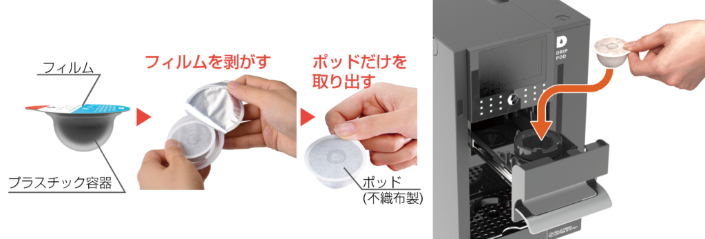 カプセルは、ケースと中身のポッドに分かれますので分別しやすくなっております。