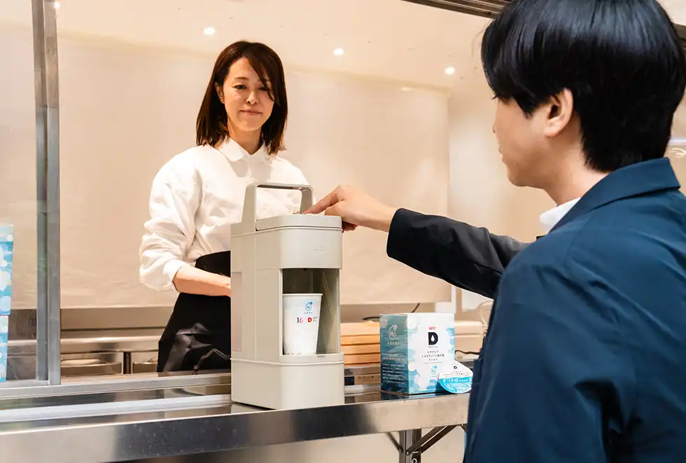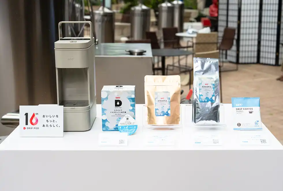 「UCCサステナビリティ指針『2040年までにカーボンニュートラルの実現』の実現に向けた水素焙煎機の開発と、UCCが培ってきた焙煎技術が出合ったことで生まれた、新たなコーヒーのおいしさこそ、ドリップポッド10周年のテーマ『おいしさをもっと、あたらしく』を体現するものと考え『UCCミライ珈琲店』を企画しました」