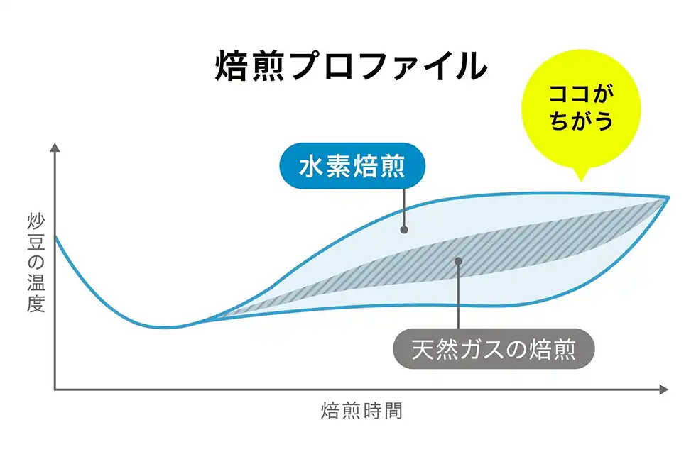 水素焙煎コーヒーとは、水素を熱源とした焙煎機でローストしたコーヒー豆で、UCCが世界で初めて量産を開始した。従来の熱源である天然ガスとは異なり、燃焼時にCO2を排出しないだけでなく、水素焙煎ならではのおいしさを引き出すことに成功した。