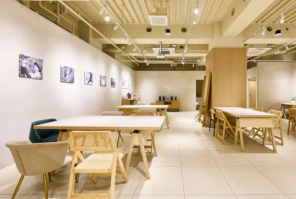グラスとカードを受け取ったら、アーチをくぐりエントランスからイートインコーナーへ。