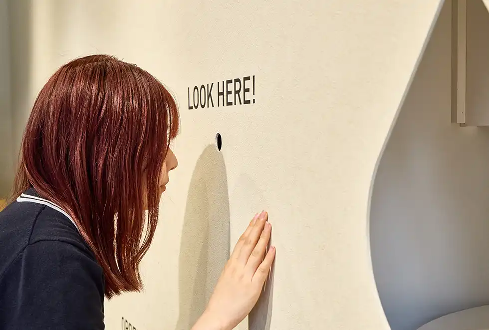 コーヒーを待つ間、「LOOK HERE!」と書かれたのぞき穴をのぞいてみると、「ひみつのドリップ」の「ひみつ」を表現したアニメーションをのぞくことができる。3回目の開催で初めて登場したアトラクションだ。