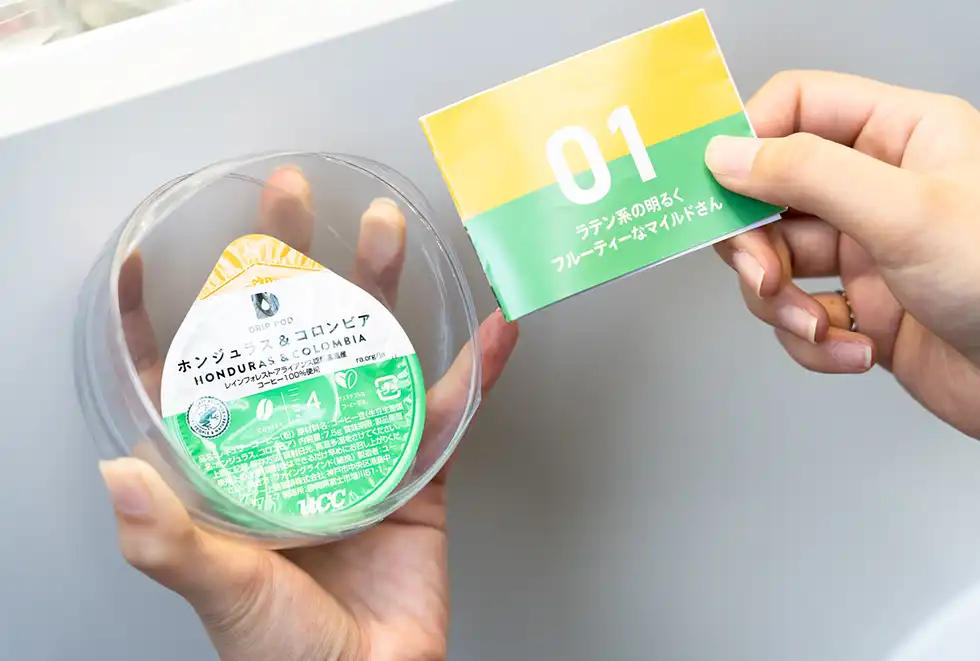 参加希望者はUCCドリップポッドストア公式LINEアカウントを友だち追加することで、無料で“巨大珈琲ガチャマシン”を回すためのコインをゲット。コインを投入して、これも巨大なハンドルを両手でガチャガチャと回すと、コーヒーカプセルと説明書が入ったガチャカプセルが。このコーヒーカプセルは用意された12種類からランダムで封入されている。例えばホンジュラス&コロンビアの場合は「ラテン系の明るくフルーティーなマイルドさん」というキャラクター設定で、ガチャで出会った新たなコーヒーの特徴をイメージしやすいよう工夫されている。またシークレットカプセルを引き当てると、「DRIP POD YOUBI」マシンと専用コーヒーカプセルがセットになったスターターセットやタカラトミーアーツの人気商品がプレゼントされた。